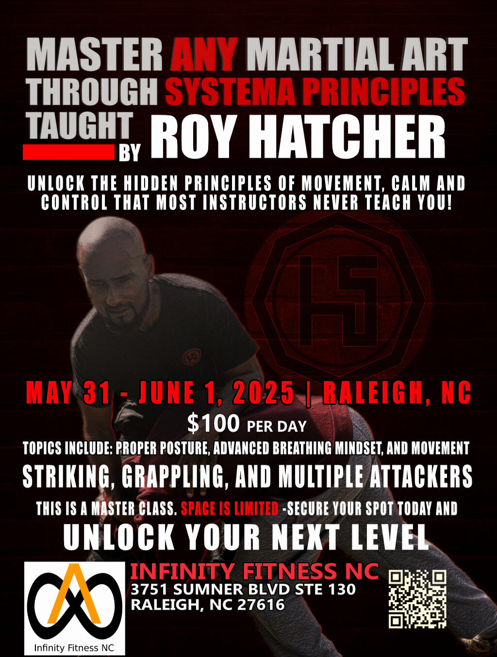 Join one of our upcoming Hatcher Systema events and experience a powerful blend of practical self-defense, internal strength training, and holistic personal development. Whether you're new to martial arts or looking to deepen your practice, you'll walk away with tools to move better, breathe deeper, and stay calm under pressure.Spaces are limited. Reserve your spot today and start your journey toward mastery.